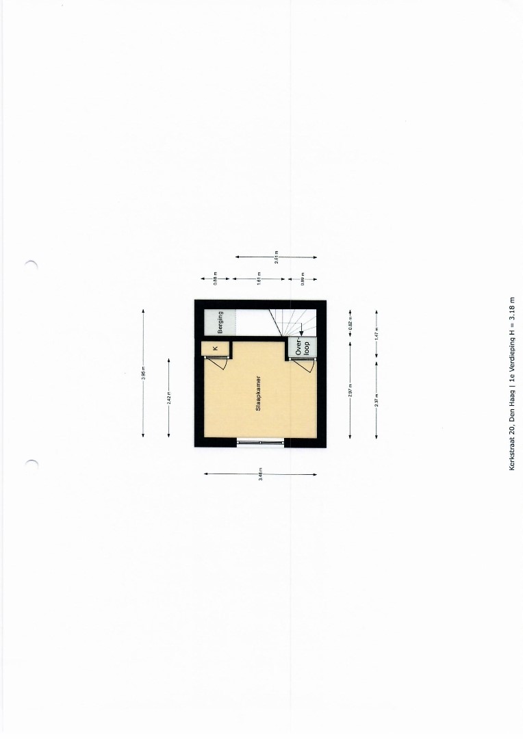 Trap naar de opkamer met 2e slaapkamer ca. 2.42 x 3.48 met vaste kast.