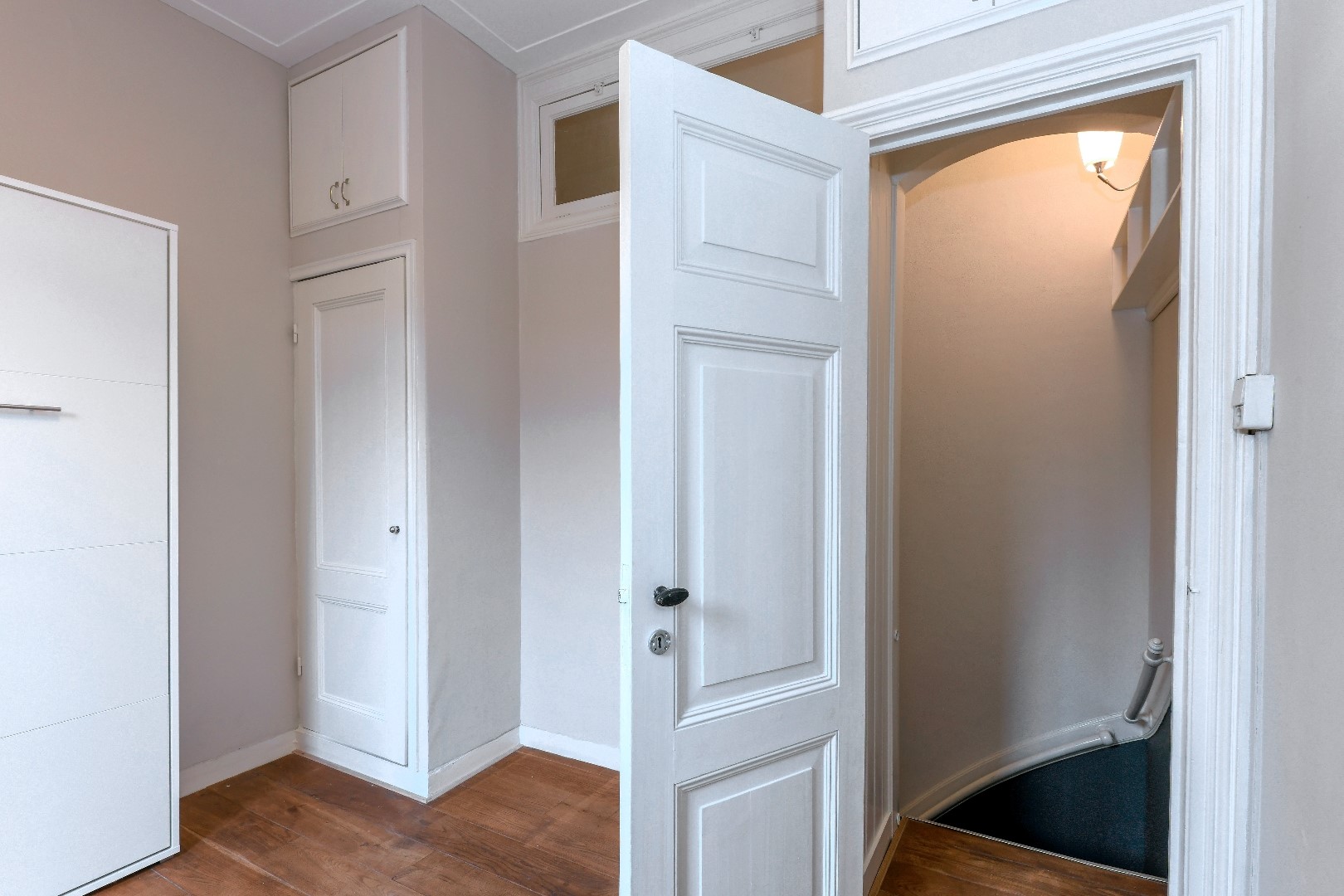 This monumental 3/4 room apartment at ground level with an upstairs room on the first floor, very centrally located near the centre in a quiet street. Close to Fredrikstraat and Denneweg with shops and restaurants. Close to public transport, Central Station and roads. Beach within cycling distance.
