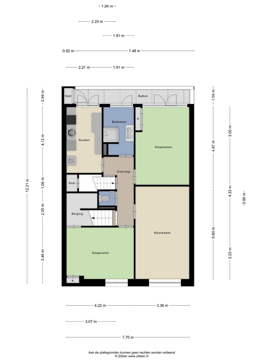 Ruim balkon over de hele breedte 7,48 x 1,09