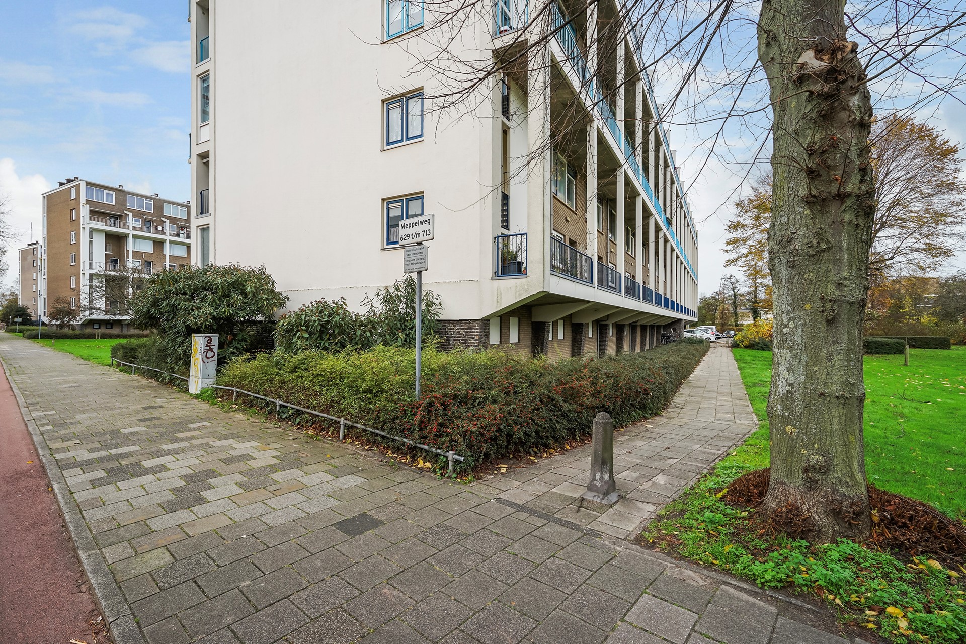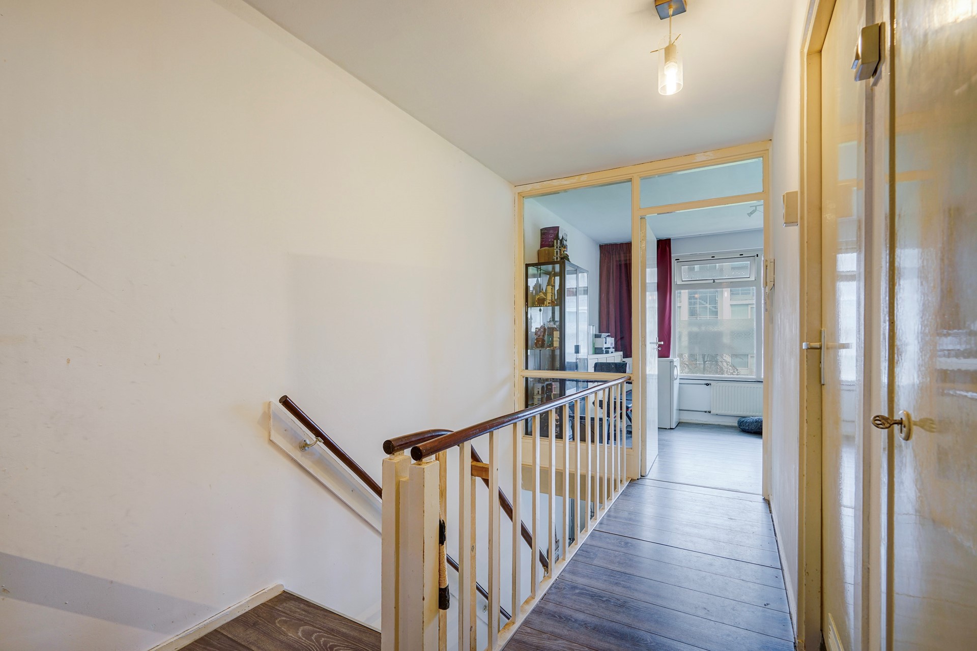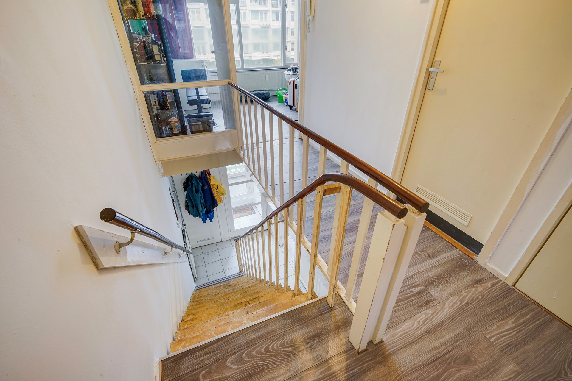 Deze verrassend lichte en royale maisonnette woning gelegen op de 1e en 2e etage, eigen berging op de begane grond. Op korte afstand van meerdere winkelcentra, scholen, openbaar vervoer en uitvalswegen. Verder liggen de duinen en het strand op fietsafstand; in de directe omgeving vindt u recreatiegebieden zoals Zuiderpark en de Uithof. Vanaf de balkons is er een weids, rustgevend uitzicht op het groen. Het appartement is in goede staat en dus zo te betrekken. Indeling: Centrale entreehal met brievenbussen- en bellentableau, lift en/of trappenhuis naar 1e etage, galerij naar het appartement, entree appartement, vestibule, royale hal ca. 8m² met een vaste kast en de meterkast, toiletruimte, keuken ca. 5.3 m² voorzien van w.o. koelkast, gasfornuis, zeer lichte woonkamer ca. 23 m² en toegang tot het balkon gesitueerd op het zuidwesten. Vanuit de gang is er een trap naar de slaapverdieping (2e verdieping), royale overloop met vaste kast, inpandige badkamer met een inloopdouche, wastafelmeubel, slaapkamer over de gehele breedte aan de voorzijde ca. 10.8m² met vaste kast, 2e slaapkamer over de volle breedte aan de achterzijde ca. 15m² met vaste kast en toegang tot het balkon over de gehele breedte 3.91 x 0.92 Op de begane grond is er binnen het complex nog een eigen fietsenberging aanwezig. Bijzonderheden: recht van erfpacht eeuwigdurend uitgegeven - canon- en beheerkosten zijn afgekocht - bouwjaar complex 1957 actieve VvE, bijdrage € 248,66 per maand - voorschot stoken € 80,00 per maand - warmwater centrale voorziening, gebruiksoppervlakte wonen ca. 83,7 m² energielabel D, gevelkozijnen van hout en uitgevoerd met dubbel glas, laminaat vloeren door de gehele woning .