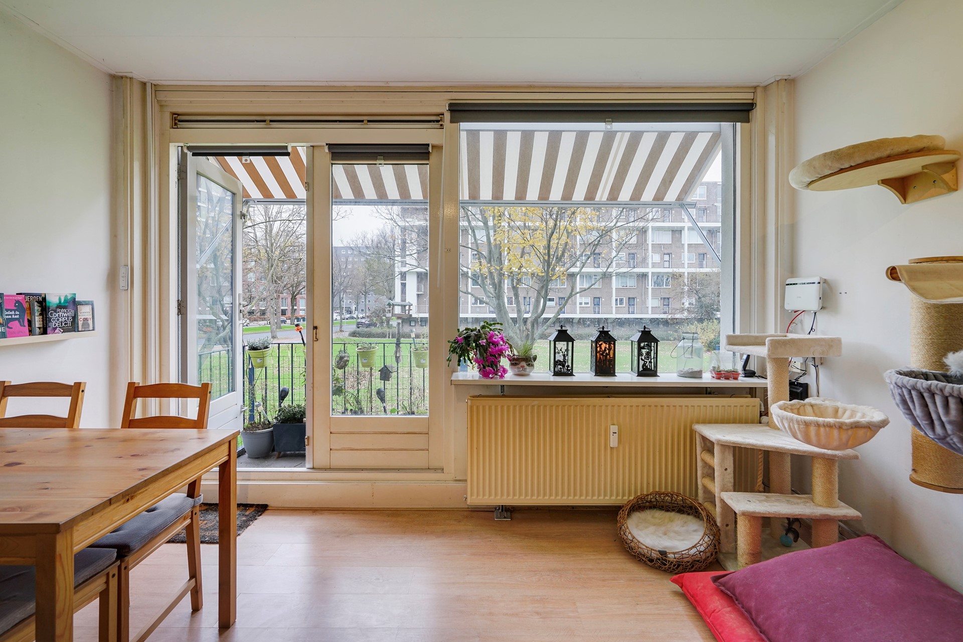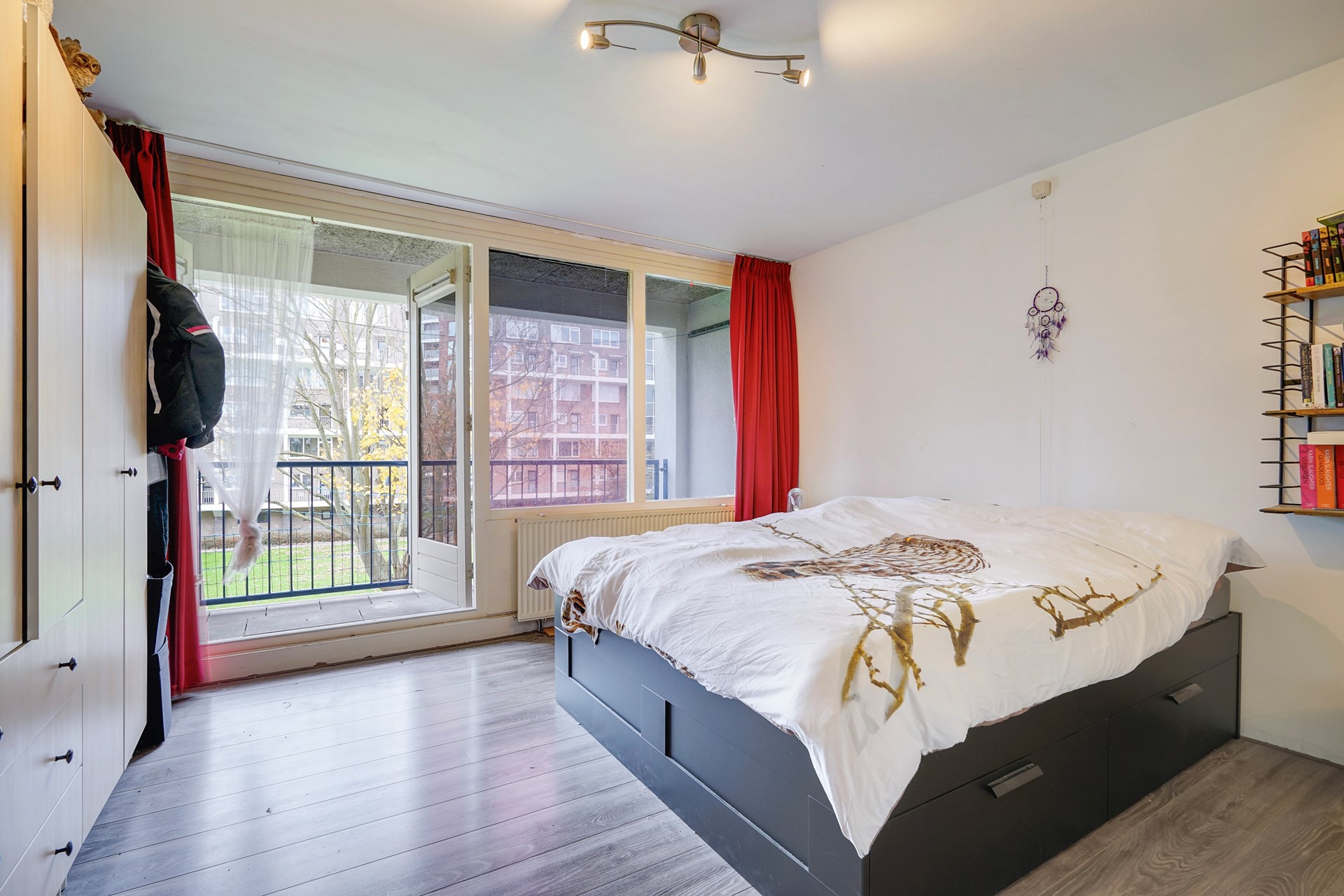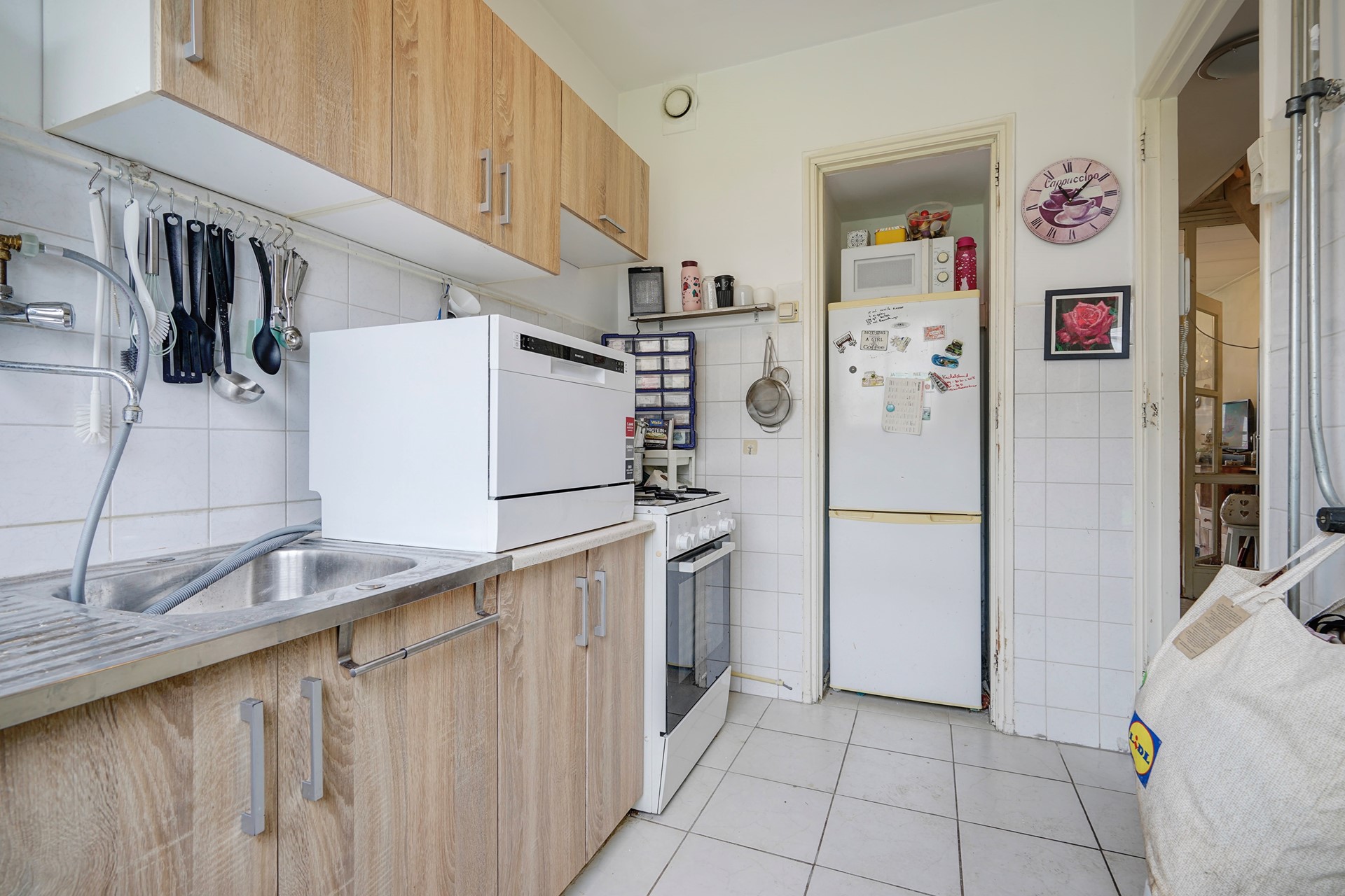 Deze verrassend lichte en royale maisonnette woning gelegen op de 1e en 2e etage, eigen berging op de begane grond. Op korte afstand van meerdere winkelcentra, scholen, openbaar vervoer en uitvalswegen. Verder liggen de duinen en het strand op fietsafstand; in de directe omgeving vindt u recreatiegebieden zoals Zuiderpark en de Uithof. Vanaf de balkons is er een weids, rustgevend uitzicht op het groen. Het appartement is in goede staat en dus zo te betrekken. Indeling: Centrale entreehal met brievenbussen- en bellentableau, lift en/of trappenhuis naar 1e etage, galerij naar het appartement, entree appartement, vestibule, royale hal ca. 8m² met een vaste kast en de meterkast, toiletruimte, keuken ca. 5.3 m² voorzien van w.o. koelkast, gasfornuis, zeer lichte woonkamer ca. 23 m² en toegang tot het balkon gesitueerd op het zuidwesten. Vanuit de gang is er een trap naar de slaapverdieping (2e verdieping), royale overloop met vaste kast, inpandige badkamer met een inloopdouche, wastafelmeubel, slaapkamer over de gehele breedte aan de voorzijde ca. 10.8m² met vaste kast, 2e slaapkamer over de volle breedte aan de achterzijde ca. 15m² met vaste kast en toegang tot het balkon over de gehele breedte 3.91 x 0.92 Op de begane grond is er binnen het complex nog een eigen fietsenberging aanwezig. Bijzonderheden: recht van erfpacht eeuwigdurend uitgegeven - canon- en beheerkosten zijn afgekocht - bouwjaar complex 1957 actieve VvE, bijdrage € 248,66 per maand - voorschot stoken € 80,00 per maand - warmwater centrale voorziening, gebruiksoppervlakte wonen ca. 83,7 m² energielabel D, gevelkozijnen van hout en uitgevoerd met dubbel glas, laminaat vloeren door de gehele woning .
