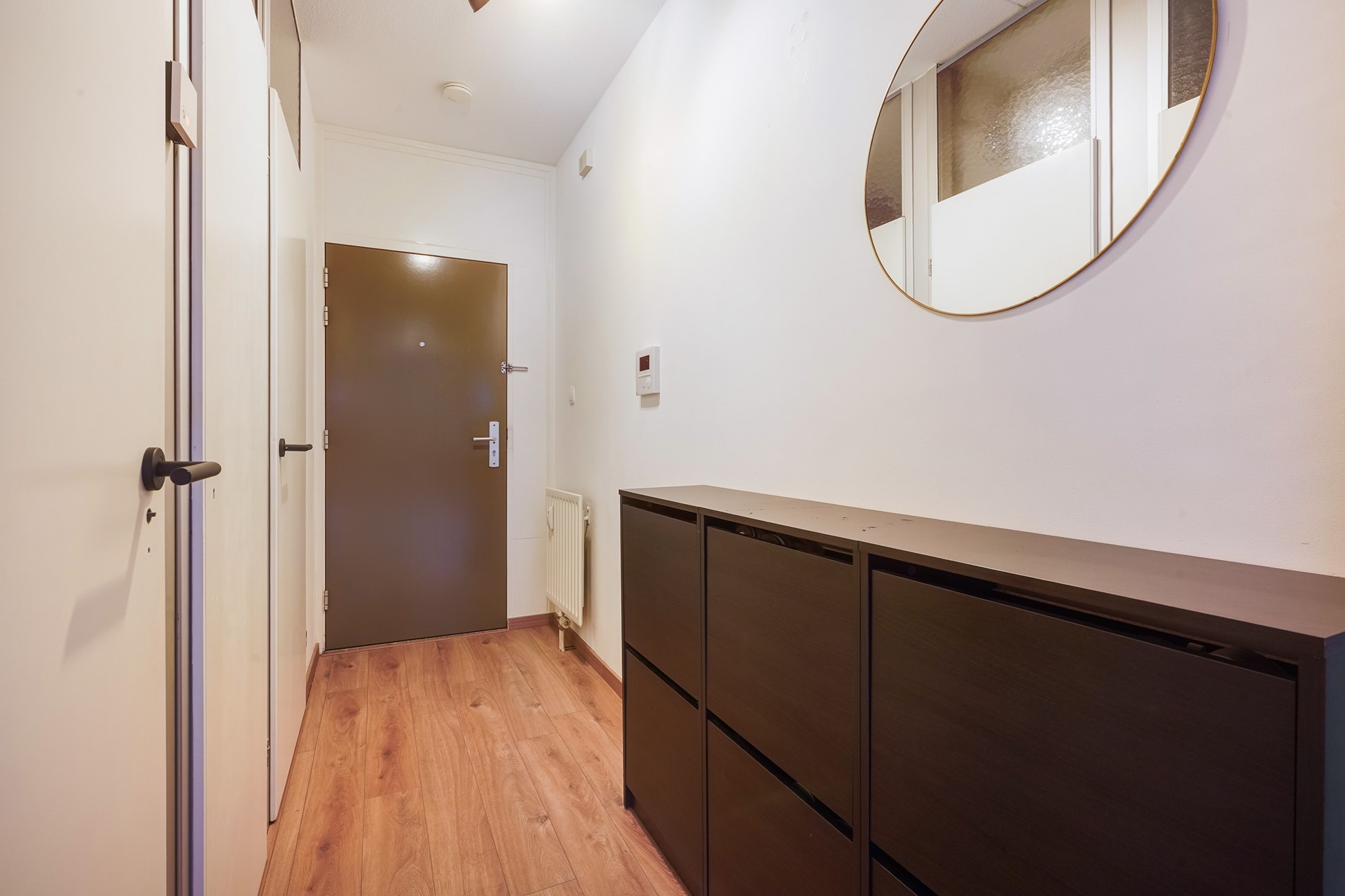 Entree van de woning via de hal met garderobekast en meterkast. Vanuit de hal is toegang tot nagenoeg alle vertrekken.